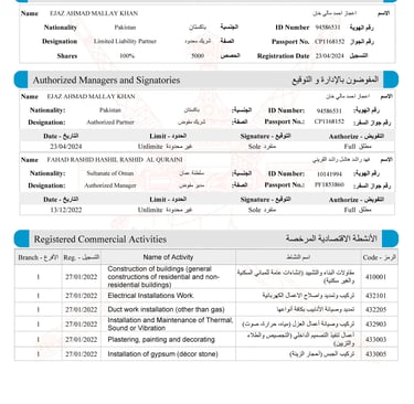 Commercial Registration Certificates